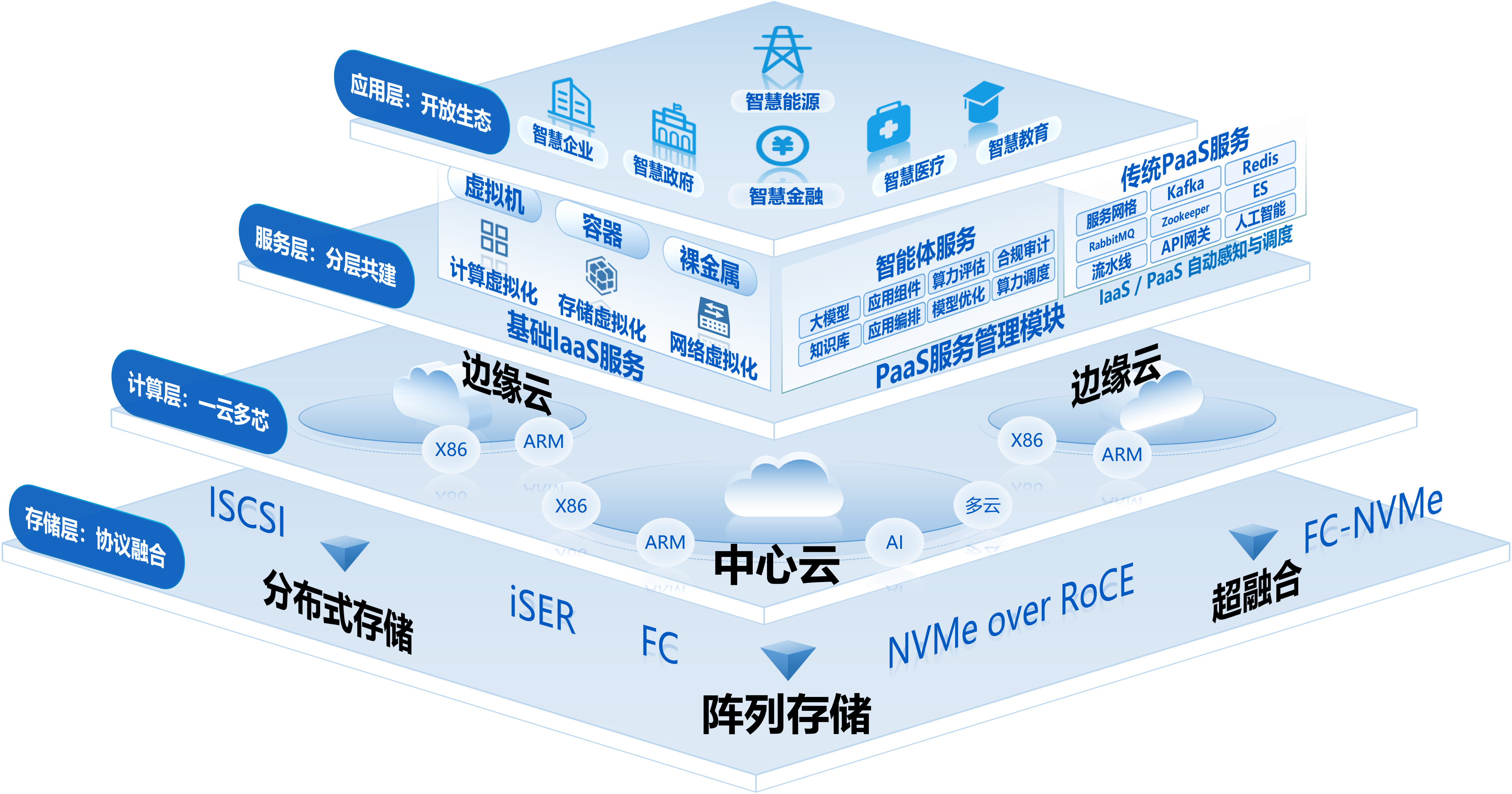 从硬件基础设施到云平台、微服务框架、运维管理体系、业务应用等不同层之间采用分层解耦的建设思路,不同层次之间通过虚拟化、API等标准化方式对接,实现产业链整体标准规范,满足关键基础设施领域的技术自主需要。